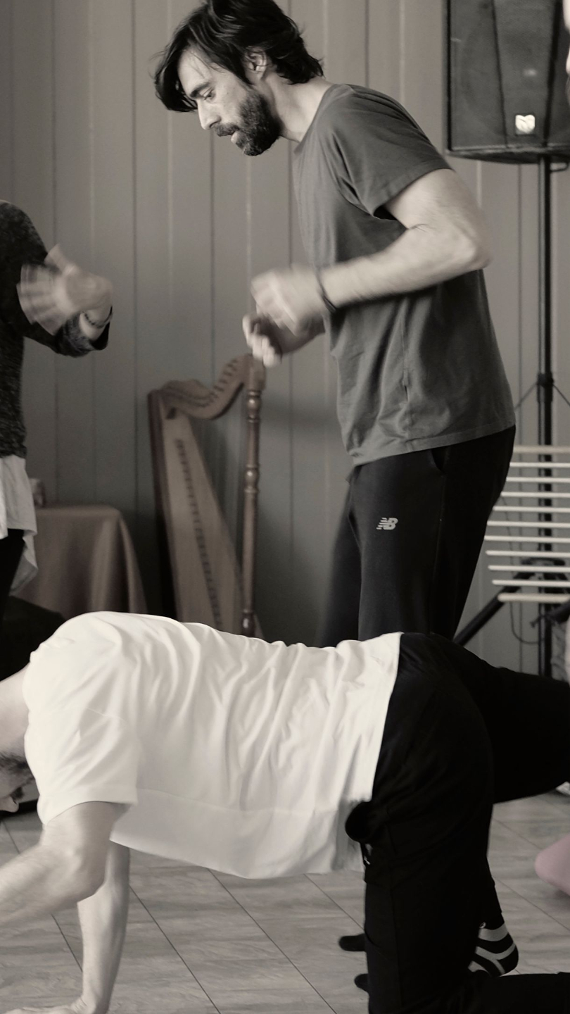 Breath, sound, movement and relating with increased body awareness applied to the individual and collective challenges of the modern world.